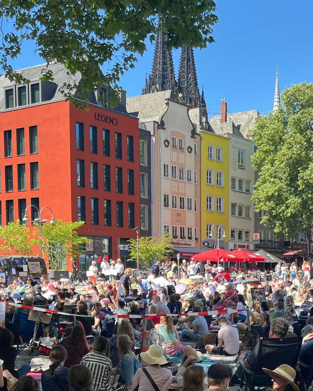 Bei schönstem Wetter machte ich mich gestern auf den Weg zum Alter Markt in Köln, wo die sogenannte Liegenddemo stattfand. Die Bilder stammen also vom Vortag – heute gäbe es von mir nur ein Foto wie Bild 12: vom Sofa aus.