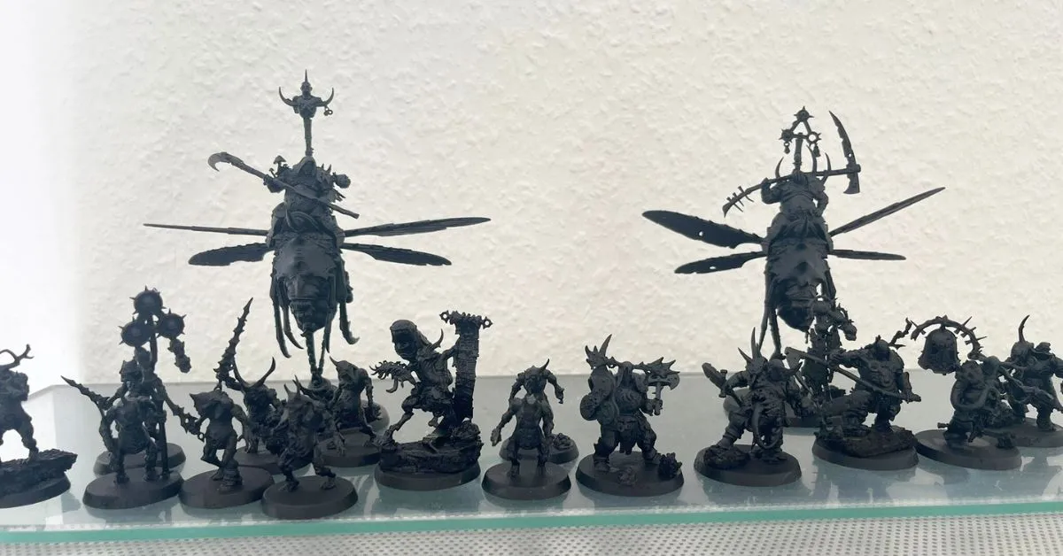 Dann haben mein Teenager und ich weiter Lucifer geguckt. Währenddessen haben wir gebastelt. Er baut Warhammer-Figuren auf…