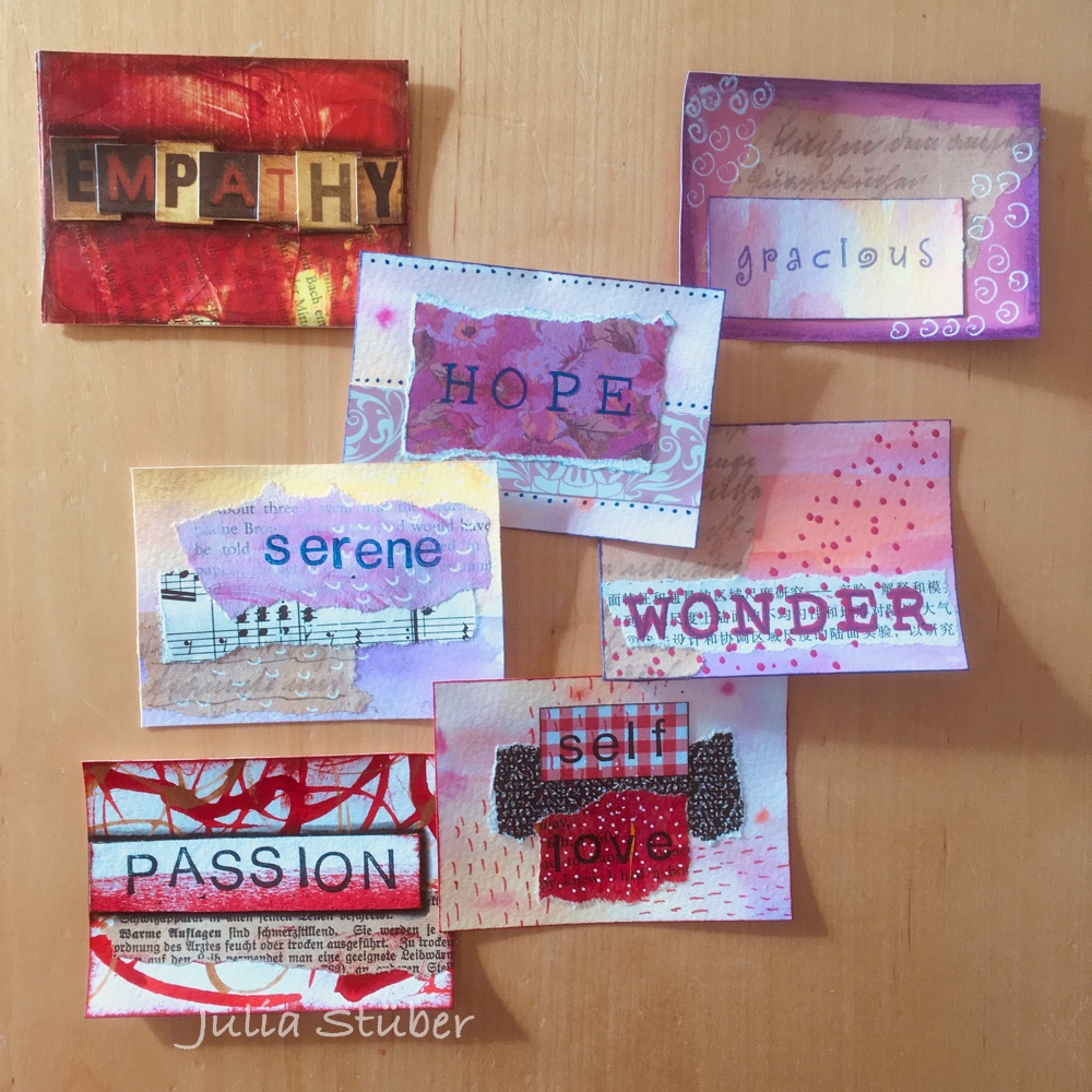 Durch YouTube bin ich dann auf Mixed Media-Kunst gestoßen und konnte mich endlich in dieser Arbeitsweise wiederfinden. Ich schaute viele, viele YouTube-Videos und Online-Kurse und experimentiere seither mit den unterschiedlichsten Medien.